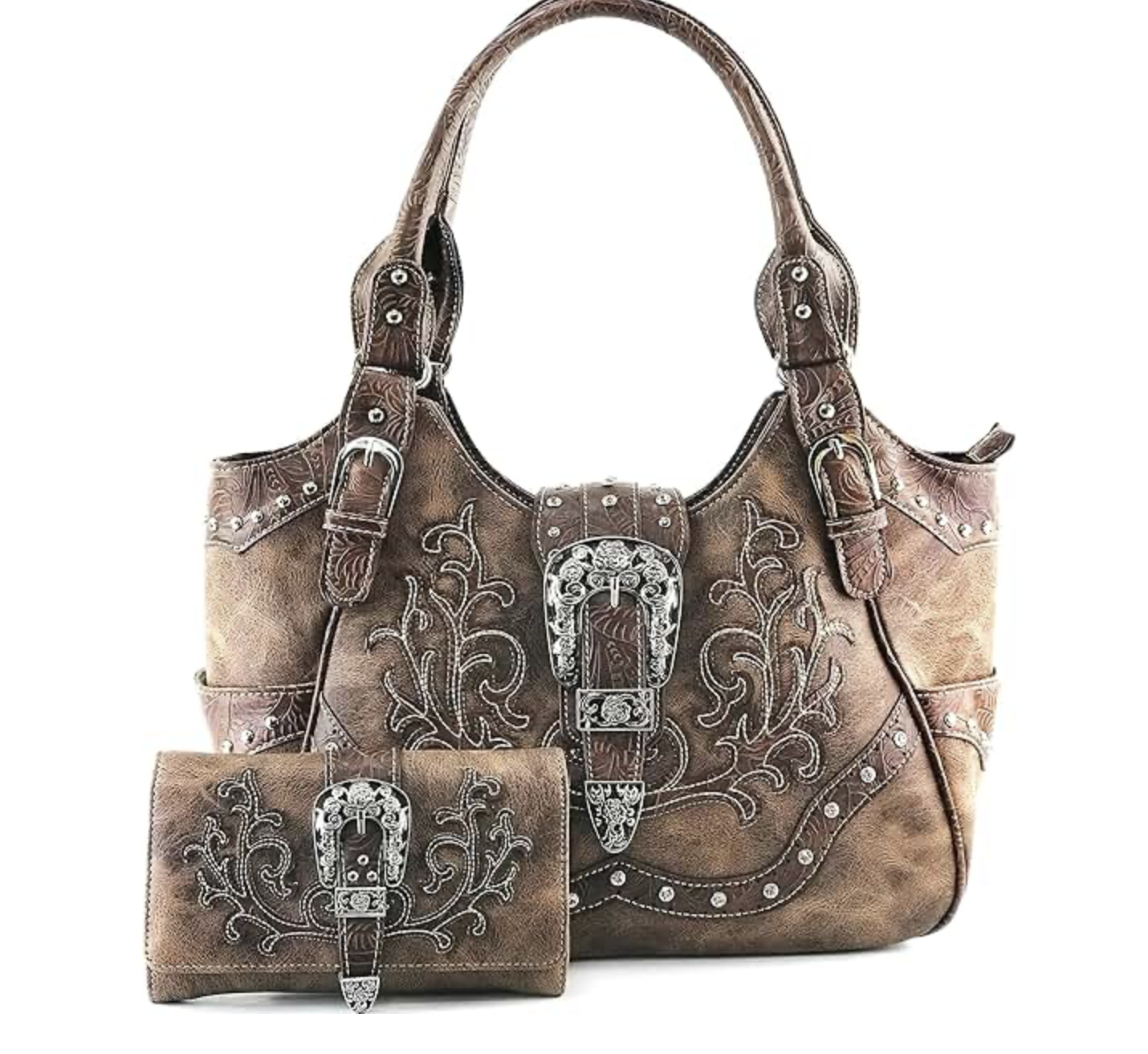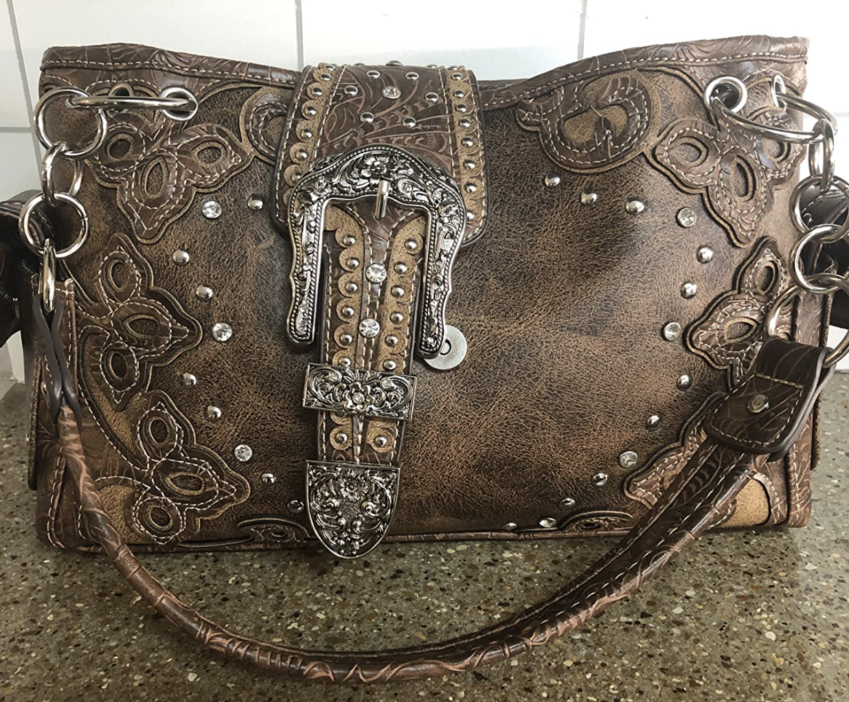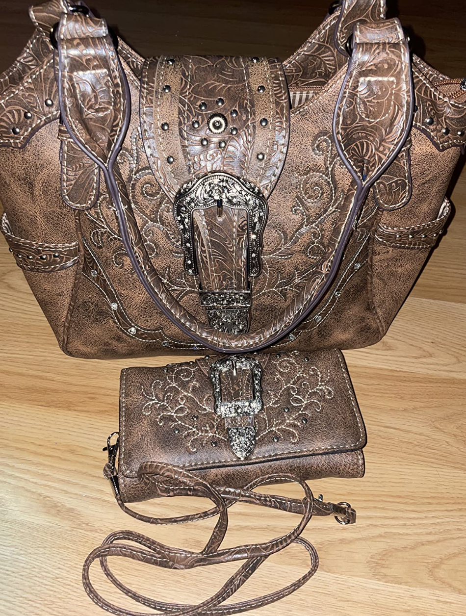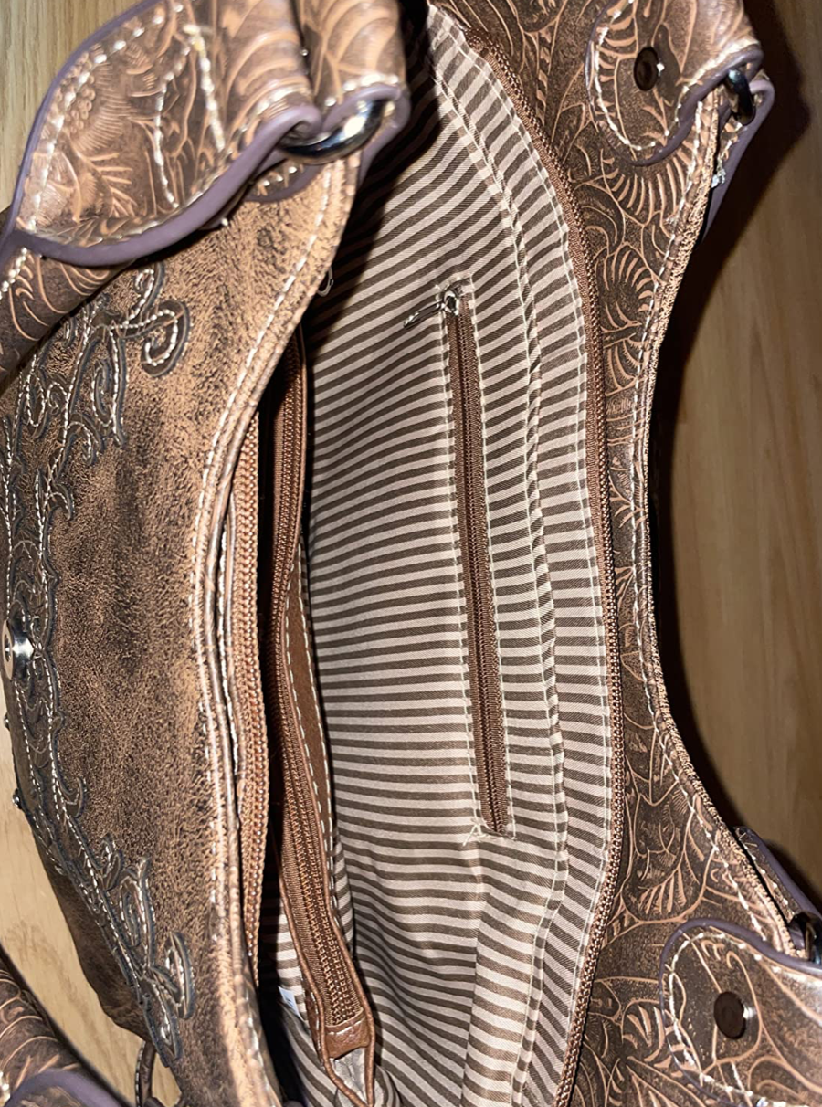 Western Brown Purse Floral Buckle Concealed Carry Handbag