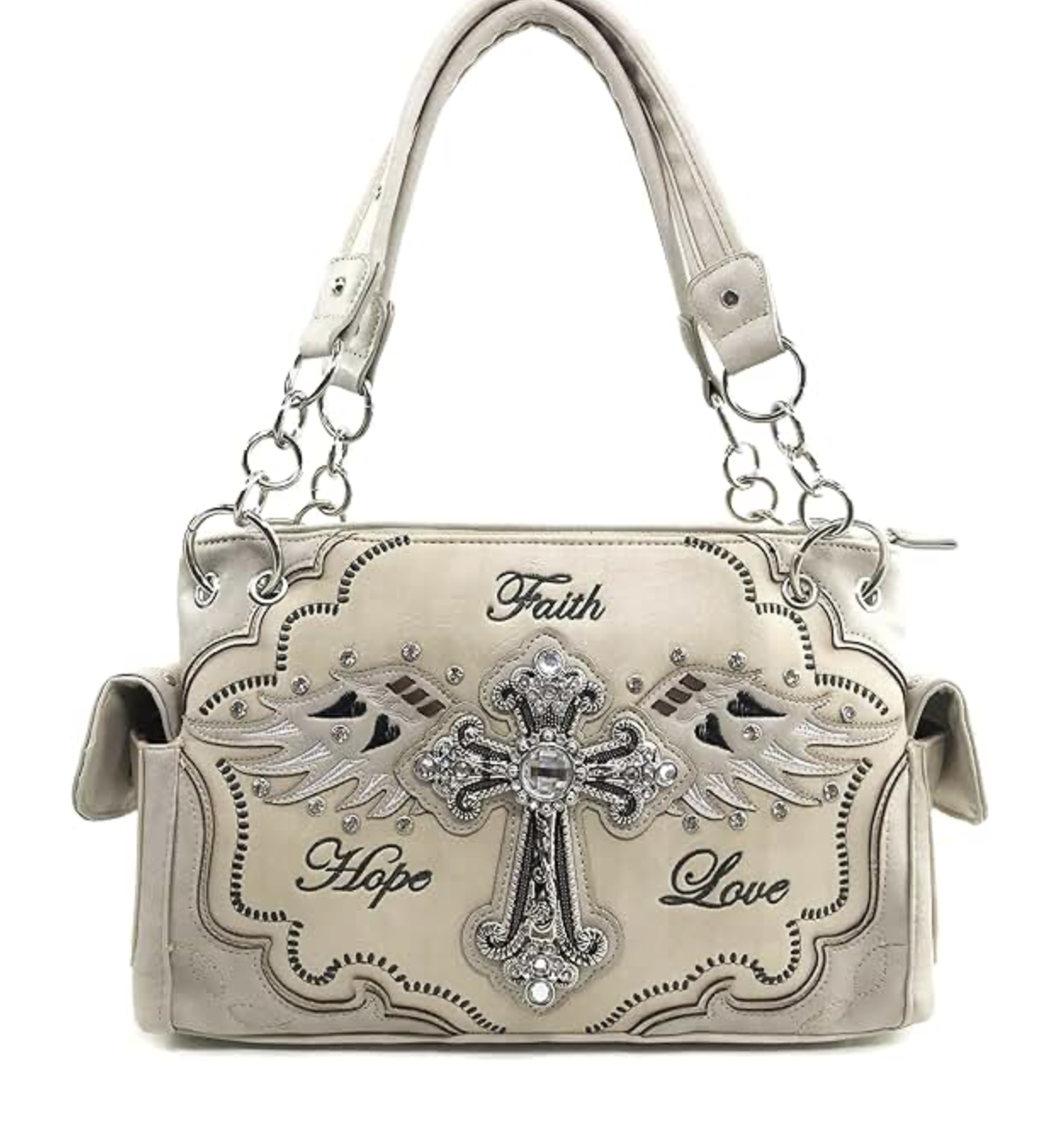 Women's Concealed Carry Angel Wings Cross Faith Hope Love purse features inspirational cross and wings design—perfect for women seeking style, faith symbolism, and secure concealed carry.